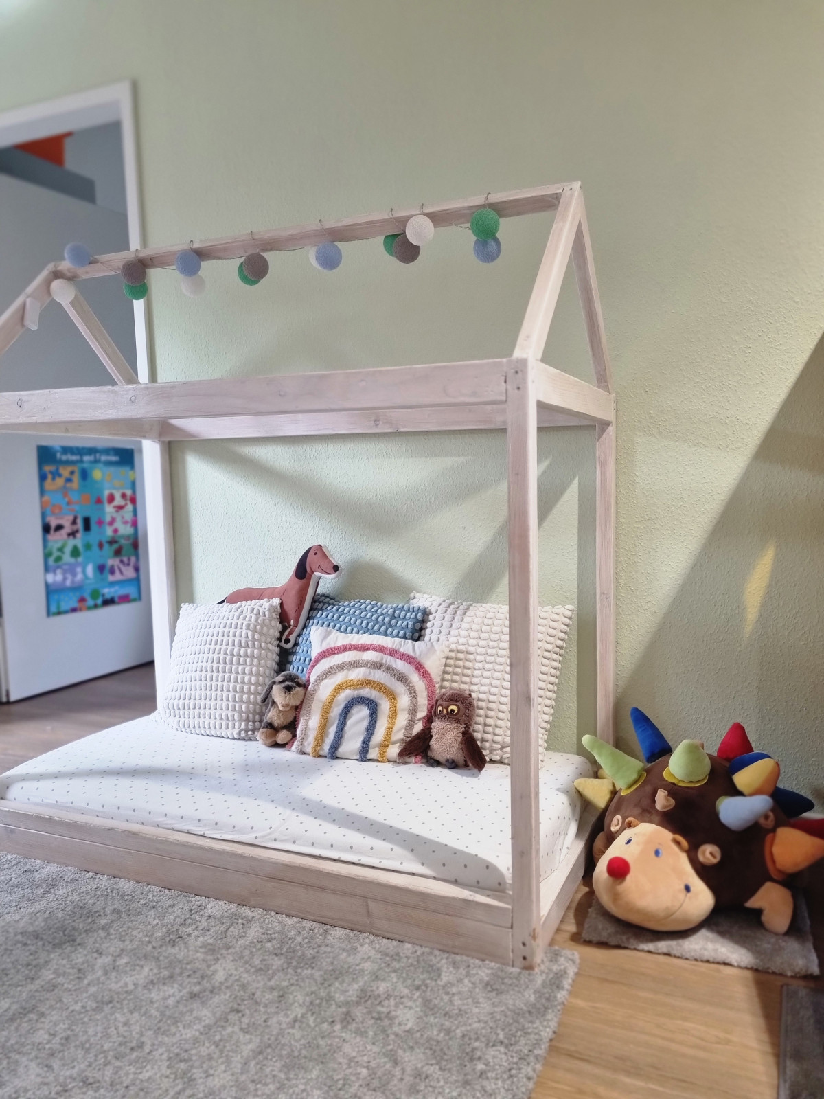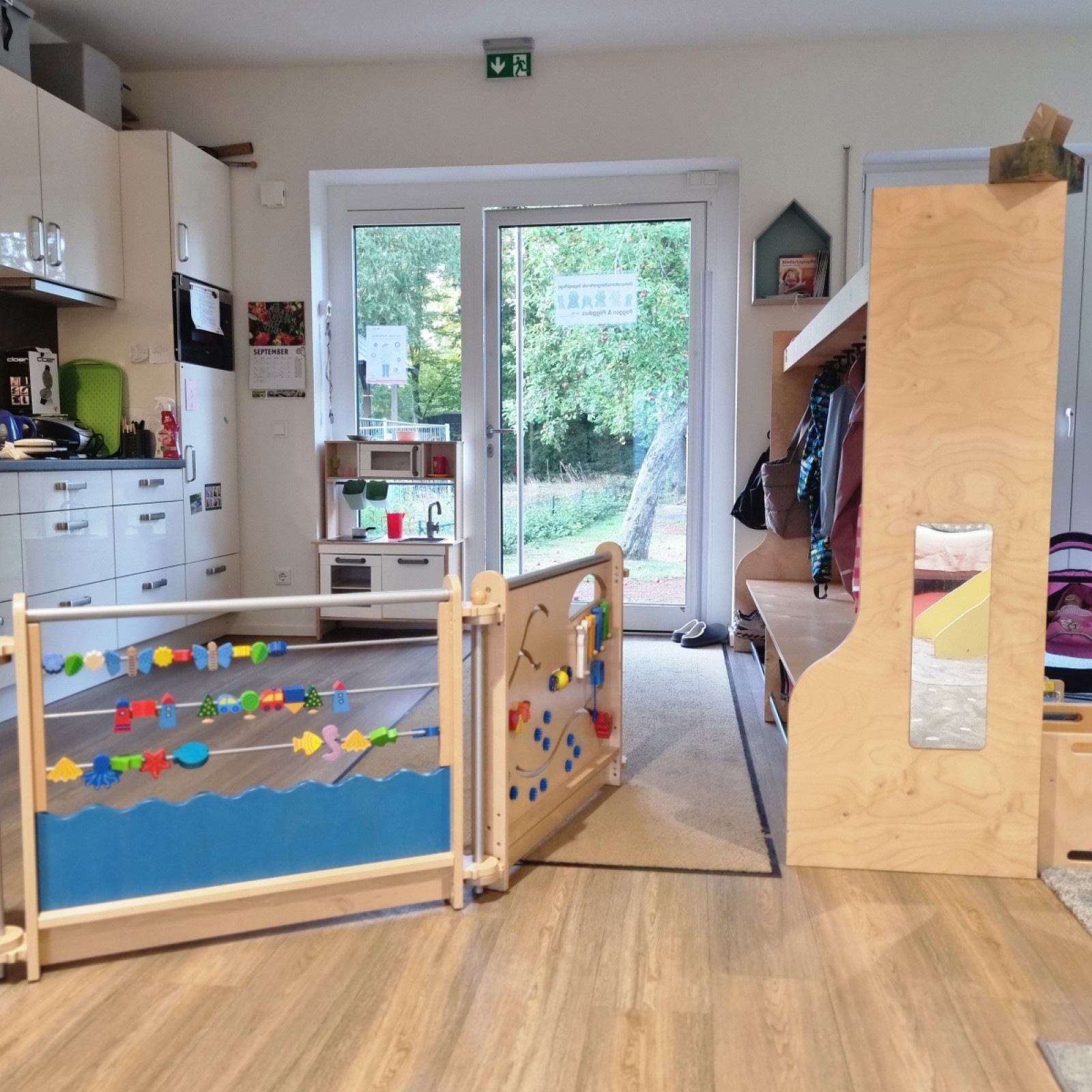 Die Räume unserer Kindertagespflege Poggen & Pöggskes in Freckenhorst sind in den Bungalow der Seniorentagespflege vom Altenheim Dechaneihof integriert. In dem noch recht neuen Haus werden sowohl Senioren als auch Kinder durch eine Verbindungstür getrennt voneinander betreut. Unsere Räume sind kindgerecht ausgestattet und bieten Platz für vielfältige Entdeckungen